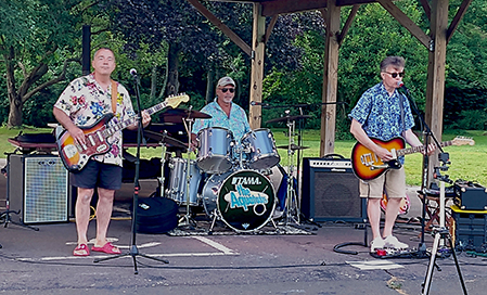 The Aquatudes entertained at a private party with a beach/surf theme.