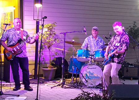 The Aquatudes brought the reverb and twang to a surf-themed family weekend event at this lakeside community. It started out great, but after we played for about an hour, a windy and intense rain shower blew through and the rest of the performance had to be cancelled - bummer!